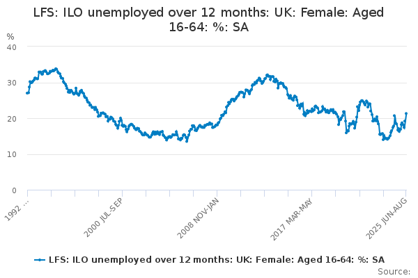Download this time seriesLFS: ILO unemployed over 12 months: UK: Female: Aged 16-64: %: SA