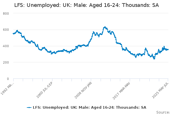 Download this time seriesLFS: Unemployed: UK: Male: Aged 16-24: Thousands: SA