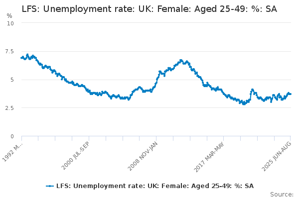 Download this time seriesLFS: Unemployment rate: UK: Female: Aged 25-49: %: SA