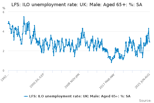 Download this time seriesLFS: ILO unemployment rate: UK: Male: Aged 65+: %: SA