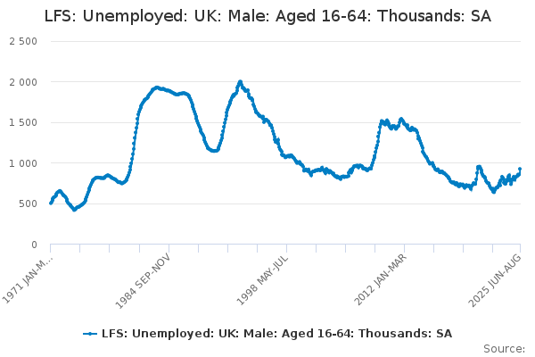 Download this time seriesLFS: Unemployed: UK: Male: Aged 16-64: Thousands: SA