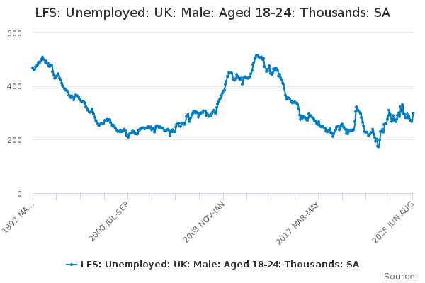 Download this time seriesLFS: Unemployed: UK: Male: Aged 18-24: Thousands: SA
