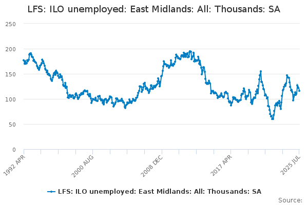 Download this time seriesLFS: ILO unemployed: East Midlands: All: Thousands: SA