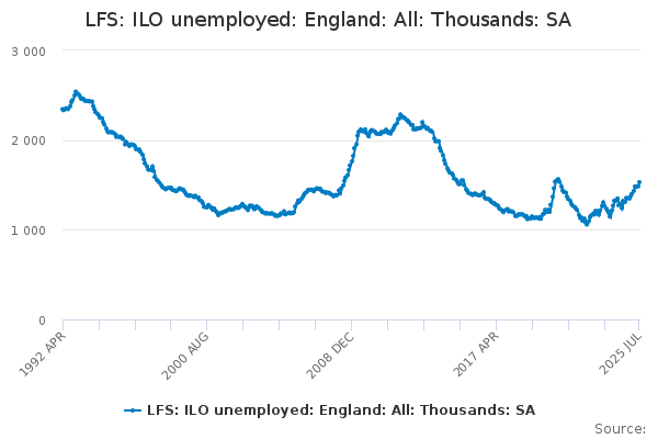 Download this time seriesLFS: ILO unemployed: England: All: Thousands: SA