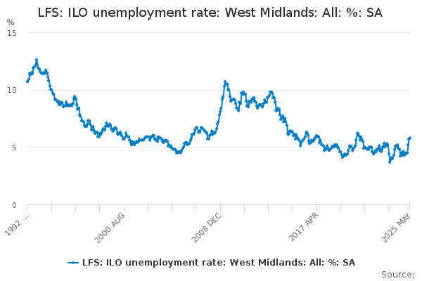 Download this time seriesLFS: ILO unemployment rate: West Midlands: All: %: SA