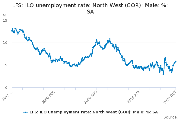 Download this time seriesLFS: ILO unemployment rate: North West (GOR): Male: %: SA