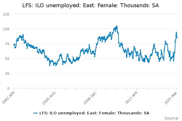 Download this time seriesLFS: ILO unemployed: East: Female: Thousands: SA