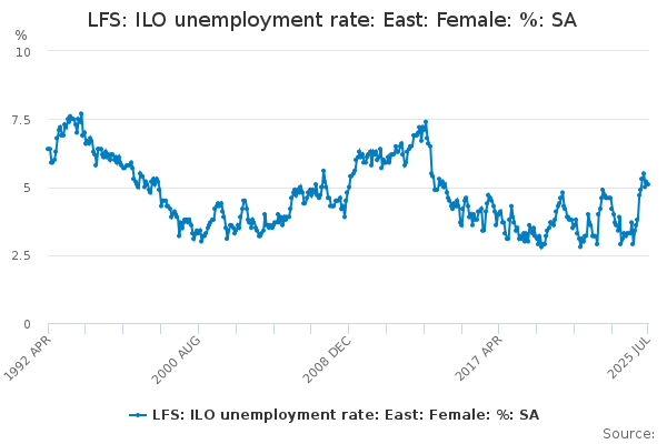 Download this time seriesLFS: ILO unemployment rate: East: Female: %: SA