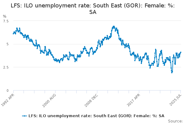 Download this time seriesLFS: ILO unemployment rate: South East (GOR): Female: %: SA