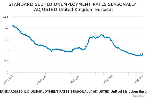 Download this time seriesSTANDARDISED ILO UNEMPLOYMENT RATES SEASONALLY ADJUSTED United Kingdom Eurostat