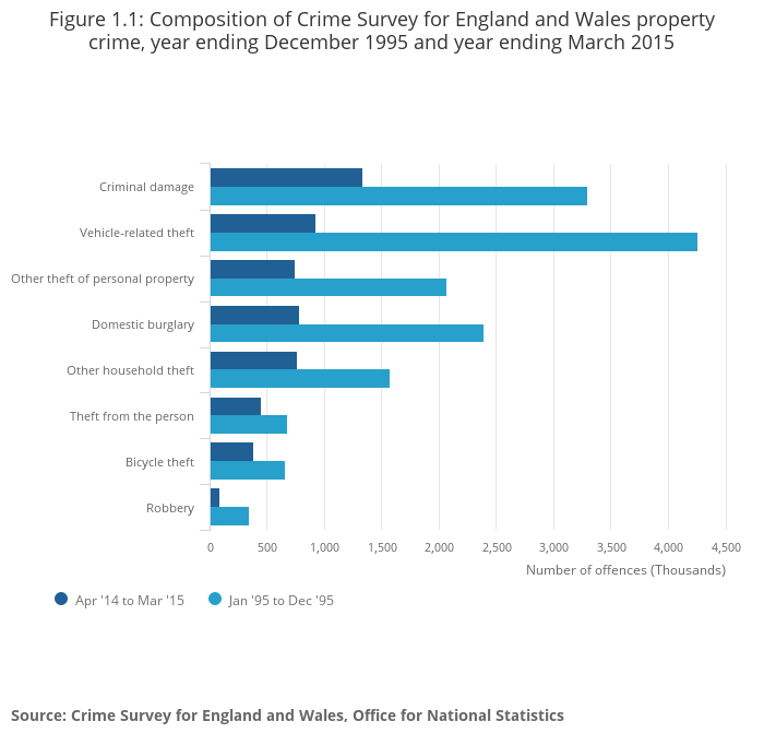 Figure 1.1: Composition of Crime Survey for England and Wales property crime, year ending December 1995 and year ending March 2015