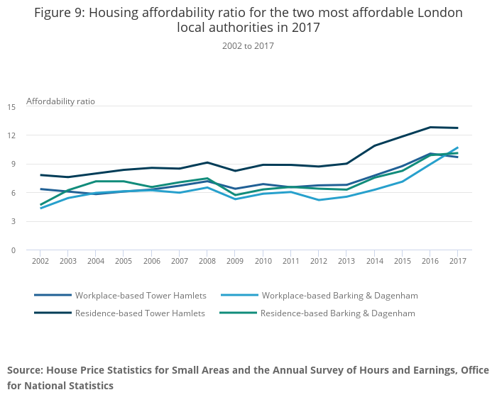 Figure 9: Housing affordability ratio for the two most affordable London local authorities in 2017