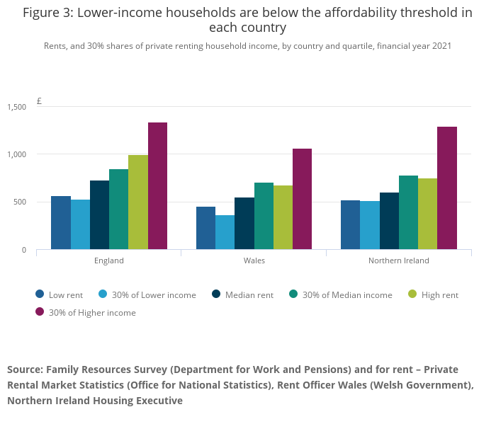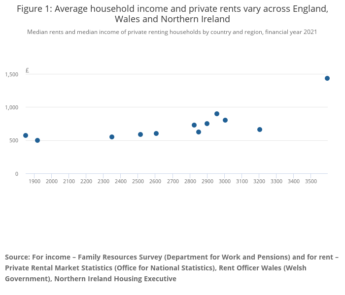 Source: For income – Family Resources Survey (Department for Work and Pensions) and for rent – Private Rental Market Statistics (Office for National Statistics), Rent Officer Wales (Welsh Government), Northern Ireland Housing Executive
