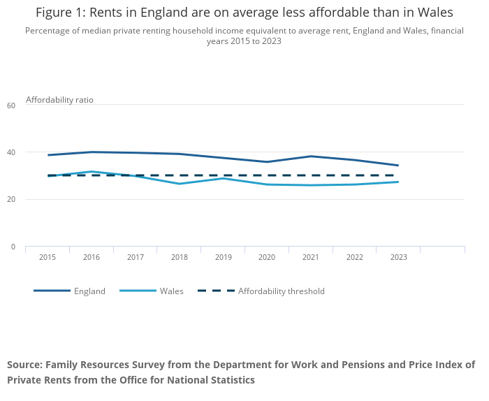 Office for National Statistics (ONS), released 28 October 2024, ONS website, statistical bulletin, Private rental affordability, England and Wales: 2023