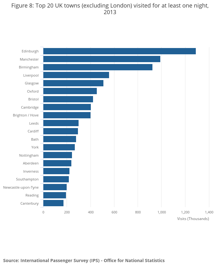 Figure 8: Top 20 UK towns (excluding London) visited for at least one night, 2013