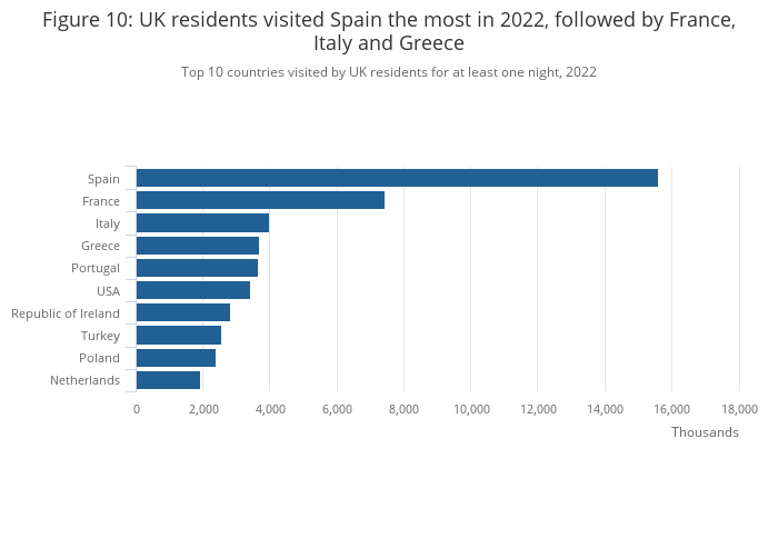 Figure 10: UK residents visited Spain the most in 2022, followed by France, Italy and Greece