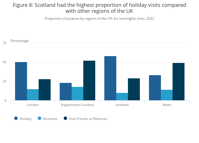 Figure 8: Scotland had the highest proportion of holiday visits compared with other regions of the UK