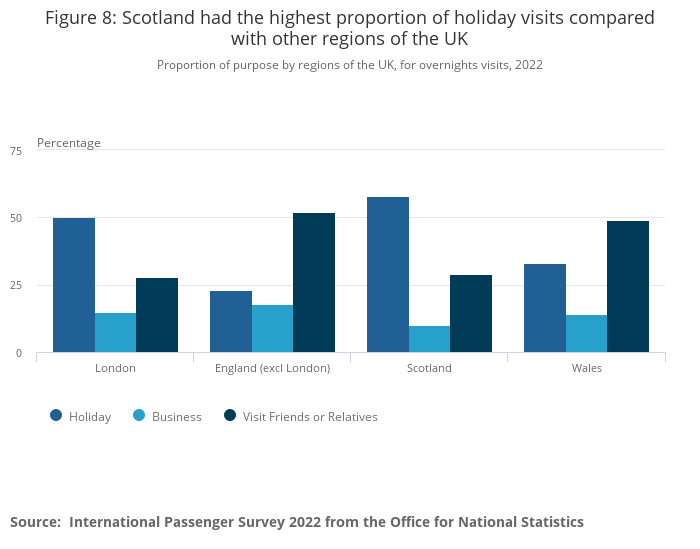 Figure 8: Scotland had the highest proportion of holiday visits compared with other regions of the UK