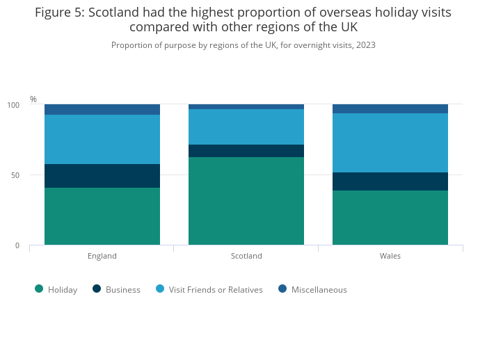 Figure 5: Scotland had the highest proportion of overseas holiday visits compared with other regions of the UK