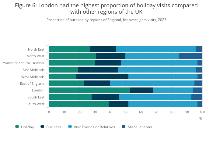 Figure 6: London had the highest proportion of holiday visits compared with other regions of the UK