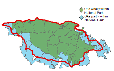 National Park population estimates are provided for the exact boundaries of the National Park and therefore cannot be produced by aggregating whole OA estimates. The estimates are produced using a ratio change methodology that uses changes in the population of the wider area around the National Park (based on aggregations of OAs) as an indicator of the change in the true population of the National Park.
