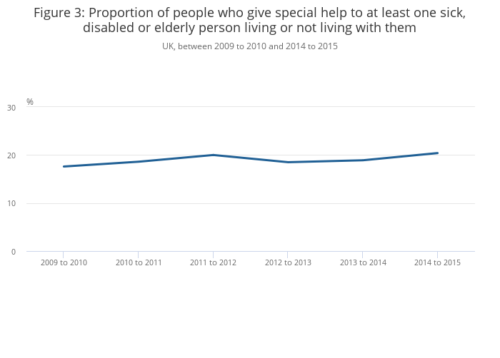 Download this chart Figure 3: Proportion of people who give special help to at least one sick, disabled or elderly person living or not living with them